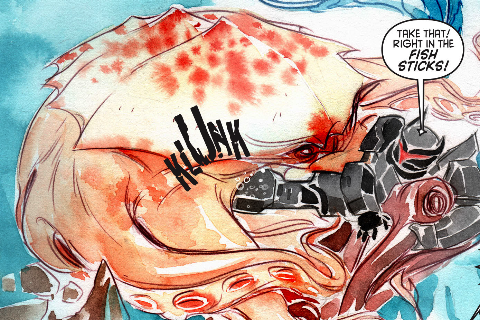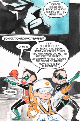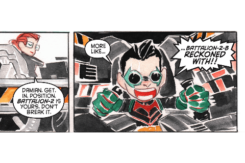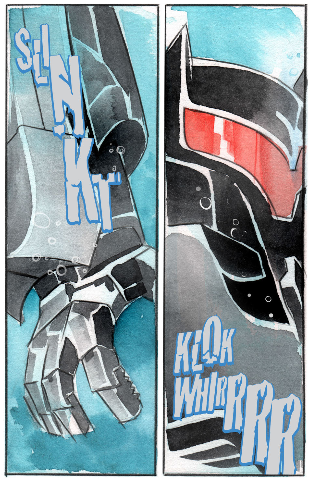 そこで、バットマンは水中用スーツと2体のロボット(バタリオン)をバックアップに出陣
