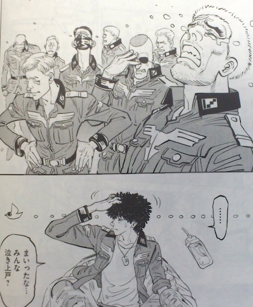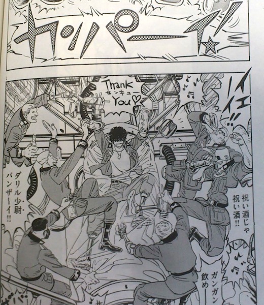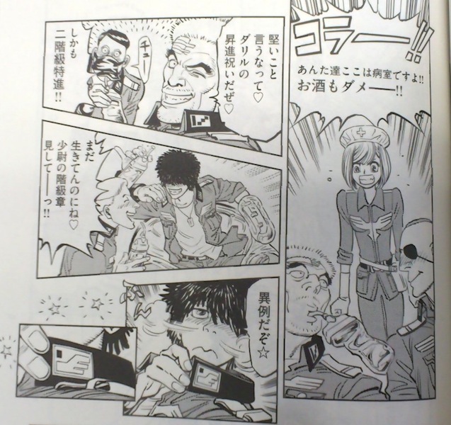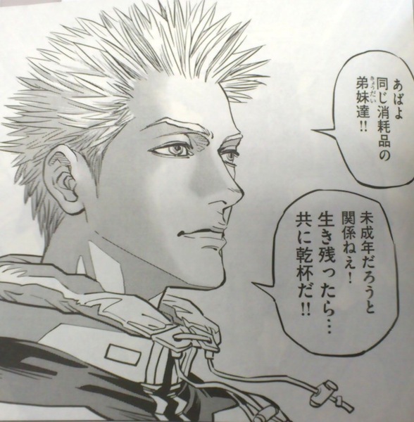 ![]() あらすじ サンダーボルト宙域における、ダリル曹長とイオ少尉との2度の激闘を経て ジオン軍リビングデッド師団のスナイパー部隊は半壊、彼らは最後の望みをダリルと研究の成果サイコ・ザクに懸けることに 連邦ムーア同胞団、補充される大量のMSと年端もいなかない大勢の子供をパイロットとしてイオは消耗品と評し、命を賭ける 部隊は互いの総力戦に!互いの狙いは 旗艦の殲滅・制圧! 前に記事にした「機動戦士ガンダム サンダーボルト」待望の2巻 前記事→【マンガ】二巻発売直前!機動戦士ガンダム サンダーボルト、軍人の生き様!死闘! あらかじめ伝えておきます、筆者はダリル曹長(少尉)のほうが好きです ジオン軍エーススナイパー・両足義足のダリル曹長、艦隊戦にてさらに左腕を欠損 最後の切り札サイコ・ザクの搭乗者に選ばれ、2階級特進の上、残った右腕まで切断されることに 四肢欠損のリビングデッド師団がダリルの少尉昇進をお祝い! ダリルの残った最後の腕を切り落とすことに、彼らは泣くのです。 自分たちの無力に、そこにすがらざるをえない状況に サイコ・ザク操縦のため 四肢全てを義手・義足に(;>_<) サイコ・ザク(リユース・P・デバイス)の女性開発者 カーラ教授 反戦思想で義手の父のために始めた研究が、戦争に加担し、守るべく四肢を自ら切断する罪(カルマ)に悩む彼女 彼女に向かってダリルは告げます。 生き残ろう・・・ 必ず生き残って、いつか心から笑おう。 理不尽な現実こそ僕らを苦しめる 本当の敵だ。 戦争の時代に生まれた僕らには、ちょっぴり試練が多いけど・・・ 乗り越えた先には、きっと大きな幸せが待ってると思うんだ。 だから ダリル・・・私もいつか心から笑いたい・・・ カーラの思い(髪留め)と過去の思い出(ラジオ)を背負って サイコ・ザク出撃 一方、ムーア同胞団ではガンダムとニュータイプの少年に憧れる少年少女たちを前線に投入 イオは彼らに命じます「盾になれ」と、戦争は業の深い終わることのないジャズセッションだと。 あばよ同じ消耗品の弟妹達!! 未成年だろうと関係ねえ! 生き残ったら・・・ともに乾杯だ! FAガンダム出撃 命を吸い取る戦場に ジオンも 連邦も 自分の欲望も 逆恨みのエゴも その運命には逆らえない 戦場に残った両雄 ダリルとイオ 二人の主人公の最後の決着の行方は、次巻! ジオンの看護兵と連邦のロングヘアーの志願兵可愛かったのに(´Д⊂グスン マンガカテゴリー 関連記事 ■【マンガ】二巻発売直前!機動戦士ガンダム サンダーボルト、軍人の生き様!死闘! ■【マンガ】七つの大罪 少年誌全てを踏破した漢・鈴木央が贈る王道ファンタジー ■【マンガ】デストロ246 2巻、少女たちの殺戮の輪舞曲は加速する! |